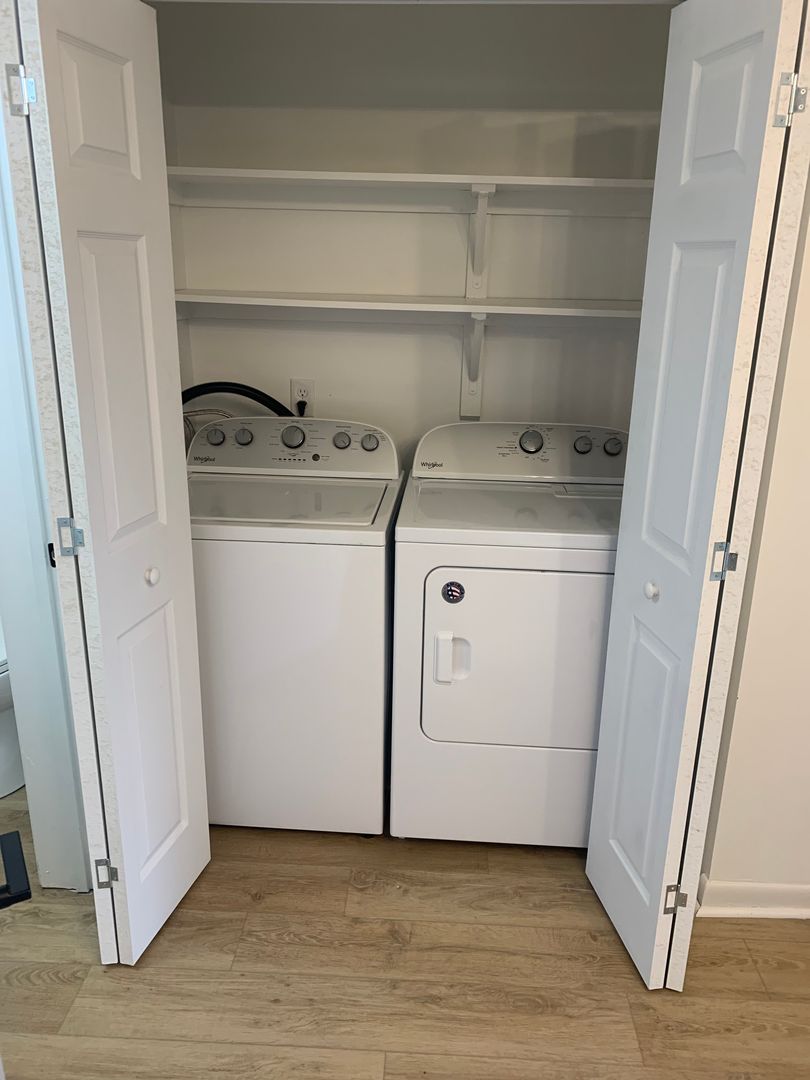 The townhouse offers full size washer/dryer off of the kitchen area, ample closet space, patio area off kitchen, large bedroom sizes, LED lighting, upgraded kitchen, fireplace for ambiance, and assigned even parking.